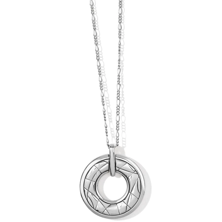 This colorful, abstract-patterned “donut” necklace which reverses to an all silver abstract pattern lends an artistic touch to your style. It was inspired by the artist Paul Klee, who was a master in modernist color and form.