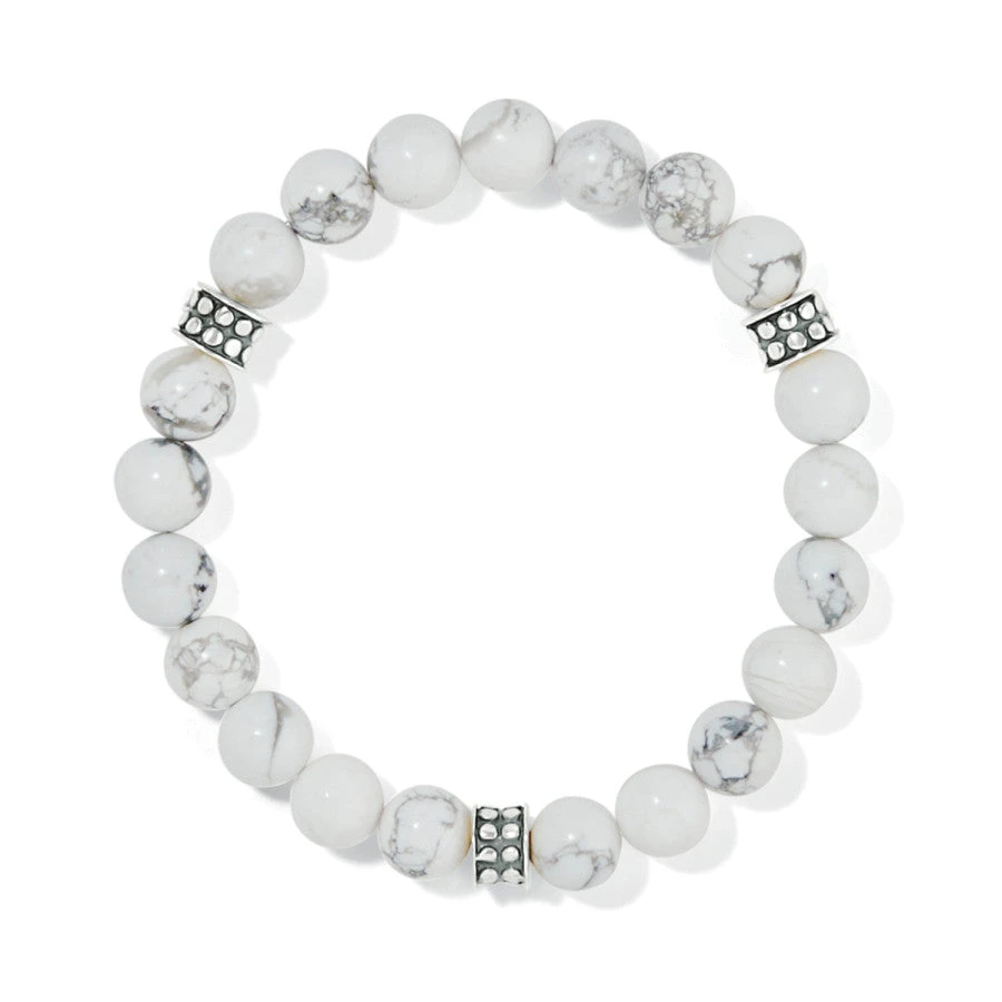 Semi-precious howlite beads showcase their beautiful natural inclusions on a comfortable stretch bracelet that’s ready to stack or wear solo.