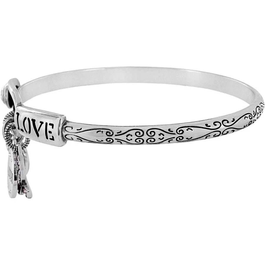 Along with a fine quality-encrusted pink ribbon, the words gratitude and faith dangle on charms from this meaningful bracelet. For every bracelet purchased $10 will be donated to breast cancer charities.